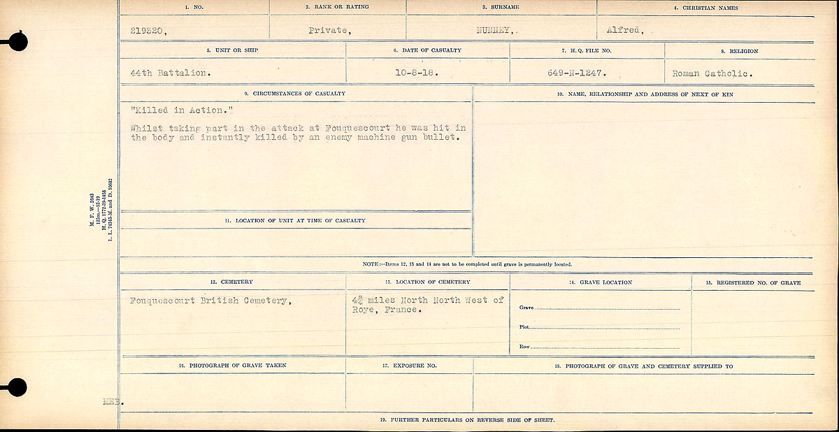 FOUQUESCOURT BRITISH CEMETERY Somme, France