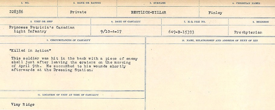 Son of Mr. A. D. B. and Mrs. C. R. Millar (nee Cameron), of Crawford Bay, British Columbia.
