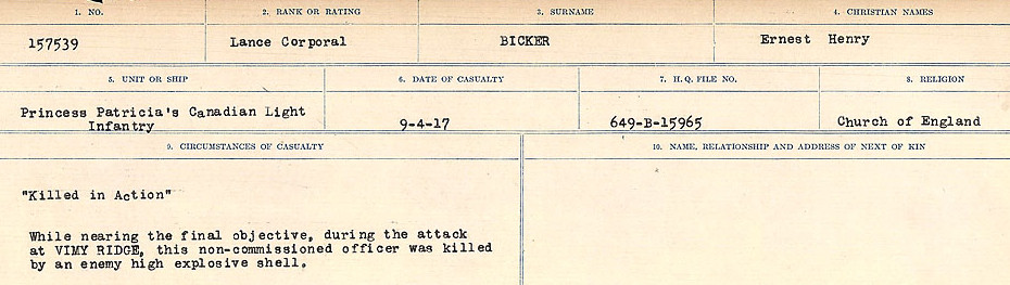 Digital gallery of Lance Corporal Ernest Henry Bicker