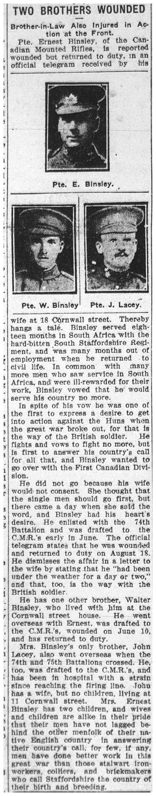 Son of George and Charlotte Binsley; husband of Ann Maria Binsley of Toronto.