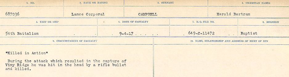 Digital gallery of Lance Corporal Harold Bertram Campbell