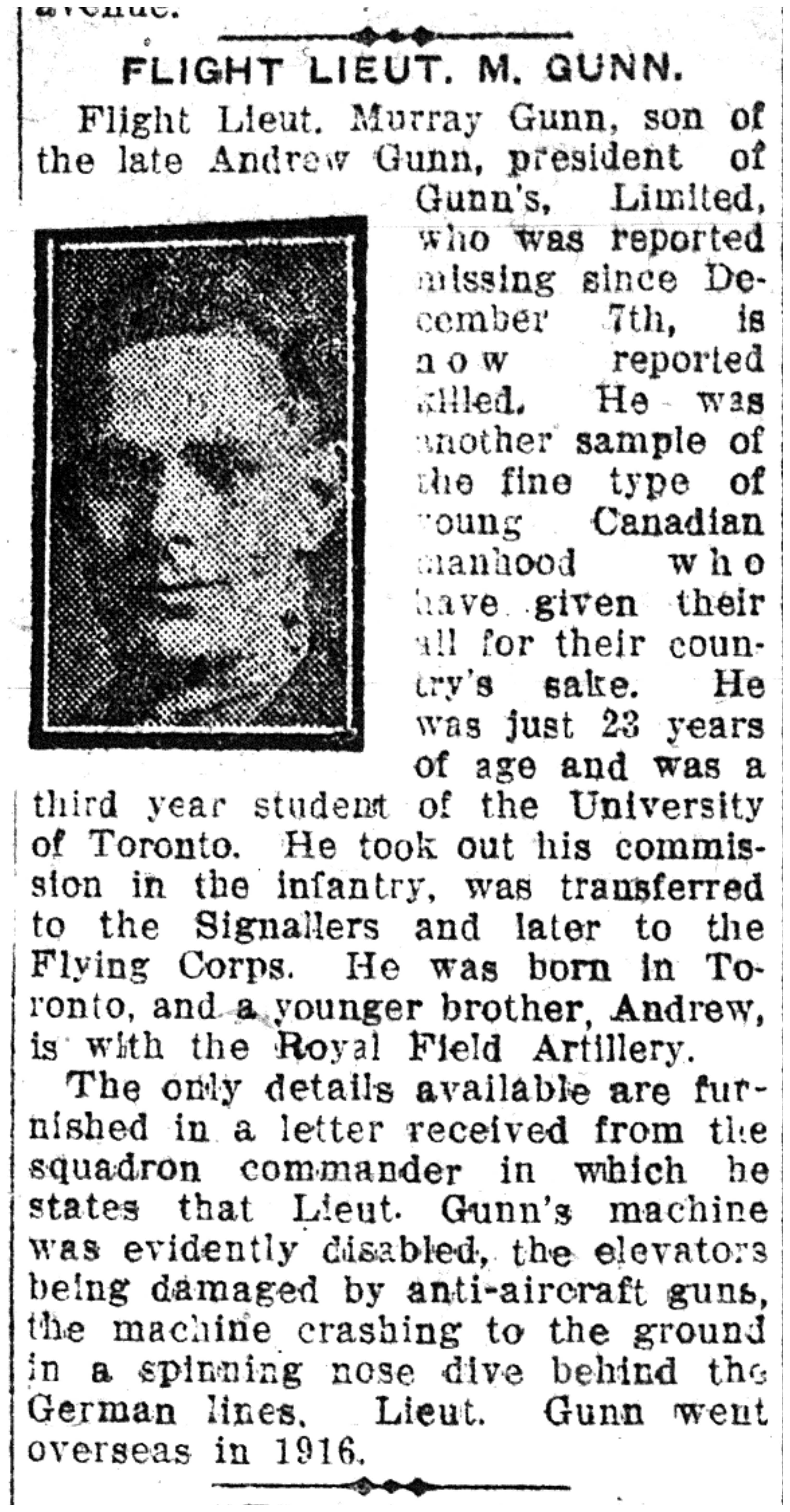Son of Andrew and Mary Douglas Gunn, of Toronto, Ontario.