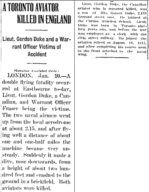 Son of Robert and Mary Duke of Toronto, Ontario.
