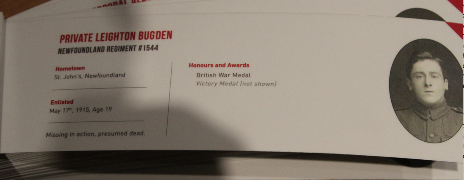 Son of James and Bessie Bugden, of St. John's, Newfoundland.