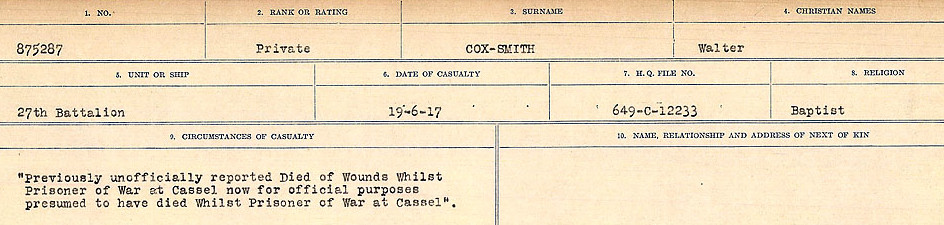 Son of H. W. and Christina Cox-Smith, of High Bluff, Manitoba.