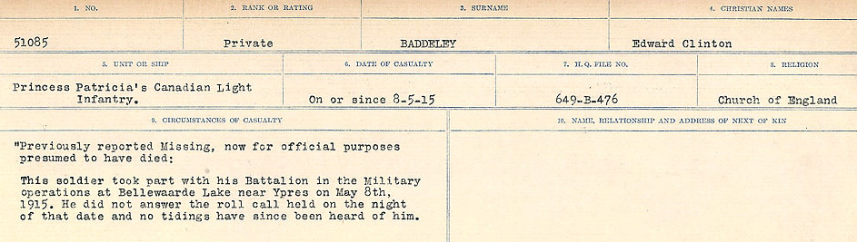 HERE ARE RECORDED NAMES OF OFFICERS AND MEN WHO FELL IN YPRES SALIENT BUT TO WHOM THE FORTUNE OF WAR DENIED THE KNOWN AND HONOURED BURIAL GIVEN TO THEIR COMRADES IN DEATH.