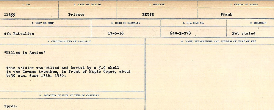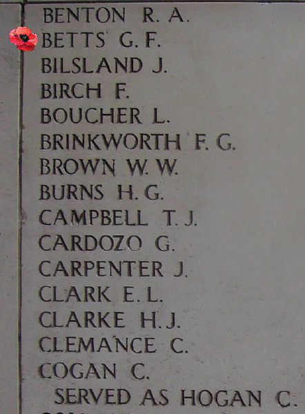 HERE ARE RECORDED NAMES OF OFFICERS AND MEN WHO FELL IN YPRES SALIENT BUT TO WHOM THE FORTUNE OF WAR DENIED THE KNOWN AND HONOURED BURIAL GIVEN TO THEIR COMRADES IN DEATH.