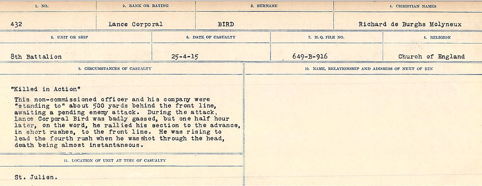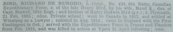 Digital gallery of Lance Corporal Richard De Berghs Molyneux Bird
