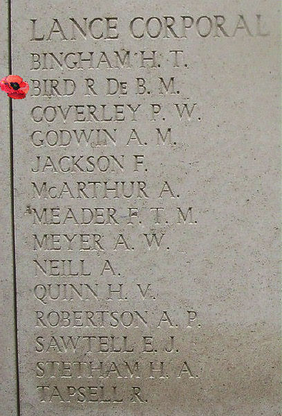 HERE ARE RECORDED NAMES OF OFFICERS AND MEN WHO FELL IN YPRES SALIENT BUT TO WHOM THE FORTUNE OF WAR DENIED THE KNOWN AND HONOURED BURIAL GIVEN TO THEIR COMRADES IN DEATH.