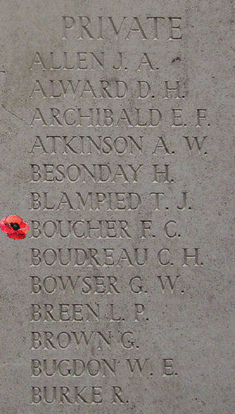 HERE ARE RECORDED NAMES OF OFFICERS AND MEN WHO FELL IN YPRES SALIENT BUT TO WHOM THE FORTUNE OF WAR DENIED THE KNOWN AND HONOURED BURIAL GIVEN TO THEIR COMRADES IN DEATH.