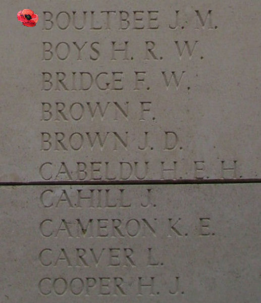 HERE ARE RECORDED NAMES OF OFFICERS AND MEN WHO FELL IN YPRES SALIENT BUT TO WHOM THE FORTUNE OF WAR DENIED THE KNOWN AND HONOURED BURIAL GIVEN TO THEIR COMRADES IN DEATH.
