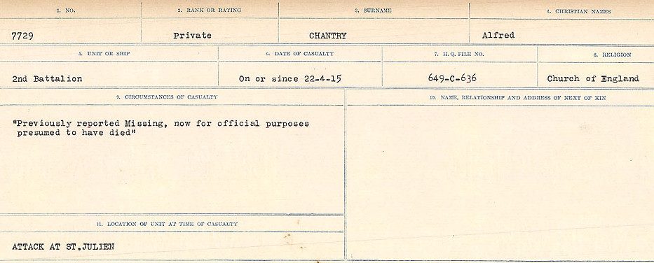 HERE ARE RECORDED NAMES OF OFFICERS AND MEN WHO FELL IN YPRES SALIENT BUT TO WHOM THE FORTUNE OF WAR DENIED THE KNOWN AND HONOURED BURIAL GIVEN TO THEIR COMRADES IN DEATH.