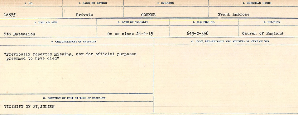 HERE ARE RECORDED NAMES OF OFFICERS AND MEN WHO FELL IN YPRES SALIENT BUT TO WHOM THE FORTUNE OF WAR DENIED THE KNOWN AND HONOURED BURIAL GIVEN TO THEIR COMRADES IN DEATH.