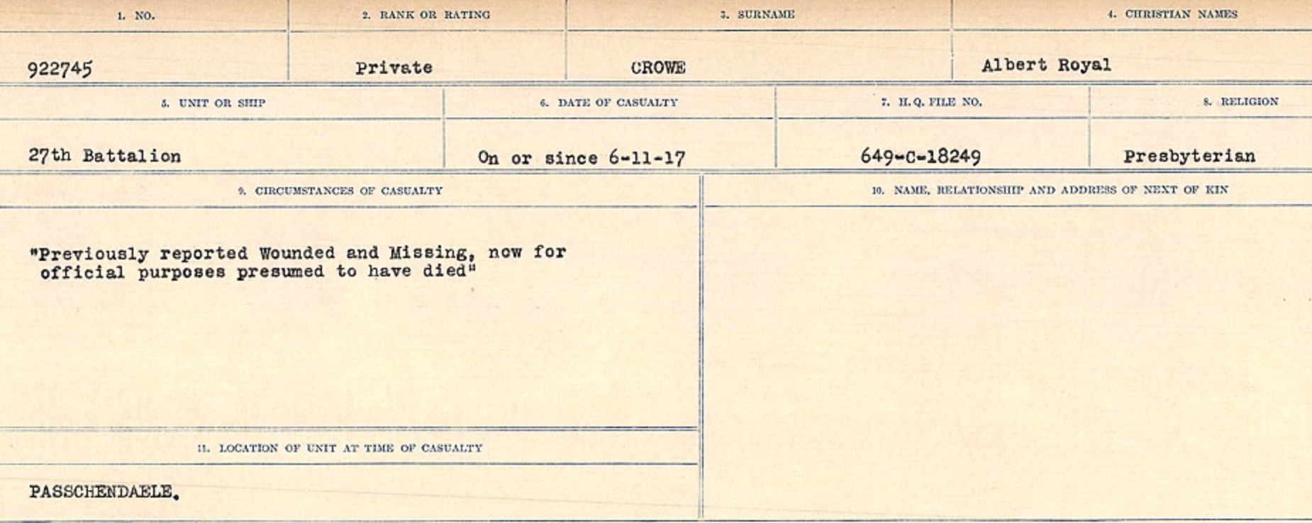 Do you have photographs, information or a correction relating to this individual’s virtual memorial? Learn more about the CVWM and the information we collect.