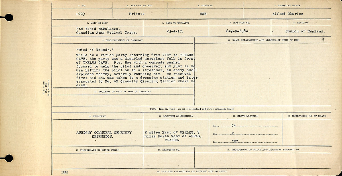 Aubigny Communal Cemetery is south of the village of Aubigny-en-Artois and the Cemetery Extension is behind it. The village of Aubigny-en-Artois is approximately 15 kilometres north-west of Arras on the road to St. Pol. After turning into the village from the N.39 on the D.75, the Cemetery lies south on a road leading from the centre of the village.