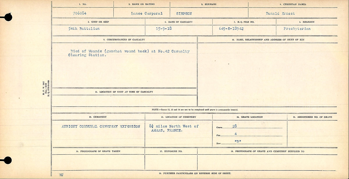Digital gallery of Lance Corporal Donald Ernest Simpson