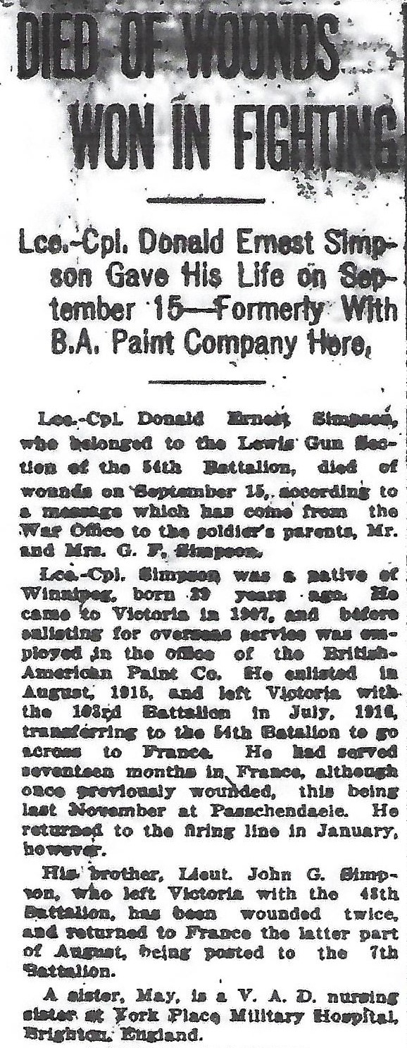 Son of Graham F. and Elizabeth S. Simpson, of 314, Cook St., Victoria, British Columbia.