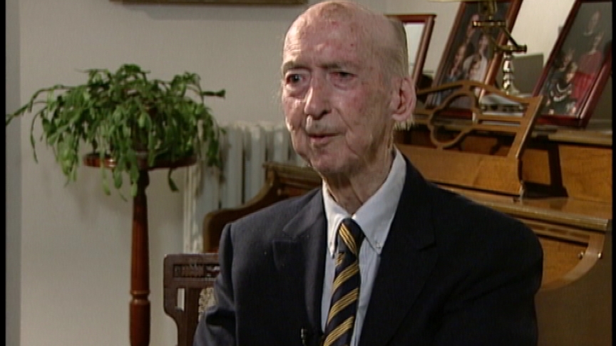 Mr. Meiklejohn recalls childhood memories of the First World War, describing casualty lists, Armistice Day 1918, and meeting returning soldiers.
