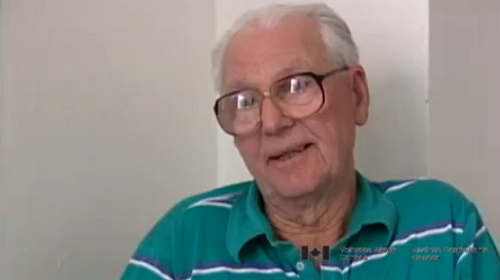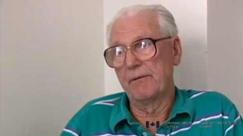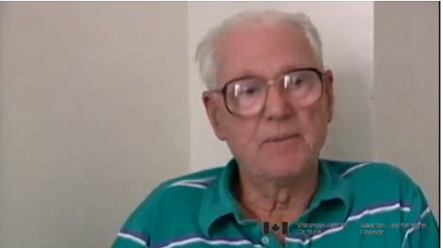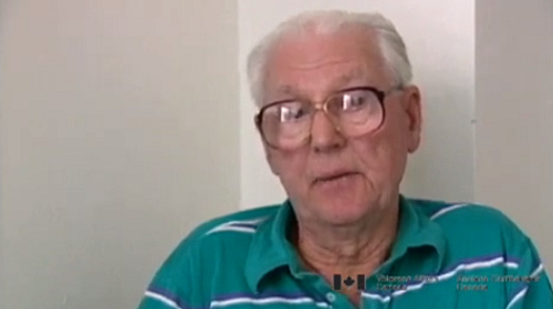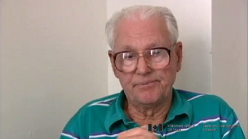 Mr. Gerrard talks about how the men's spirits are buoyed by the arrival in camp of Canadian intelligence officers, who indicate the war is over. To celebrate, the men slaughter a cow found nearby and have their first real protein in almost four years. He describes the American food drop and donating the parachutes to the local Japanese who make clothing from them.