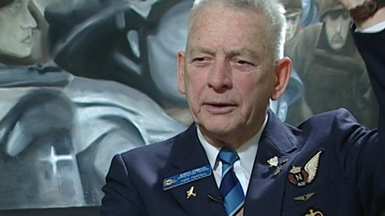 Mr. Spackman describes being shot down and taken prisoner. He describes the night before being taken by his captors to see the Pope.