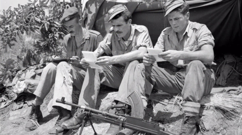 Narration on archival footage depicting the life in the trenches during the First World War.