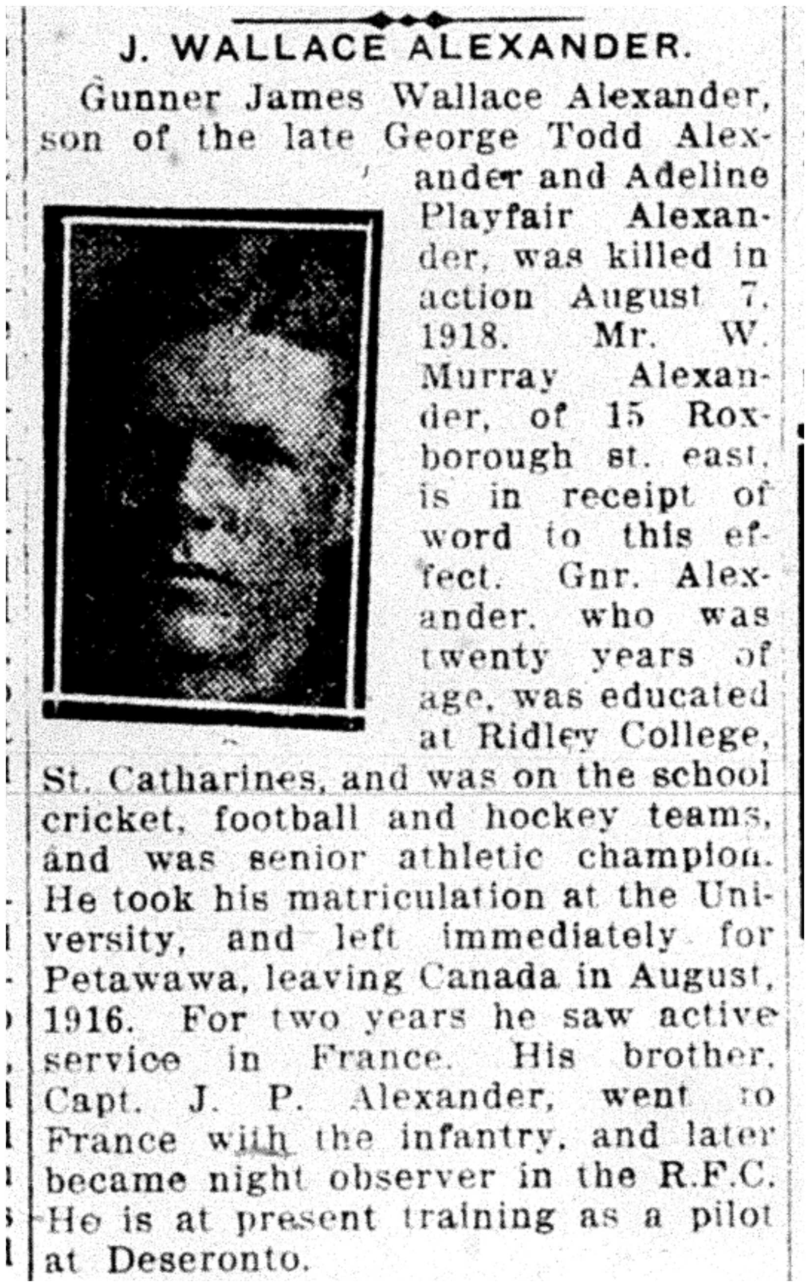 Son of George T. and Adelaide Playfair Alexander. Nephew of William Alexander of Toronto, Ontario.
