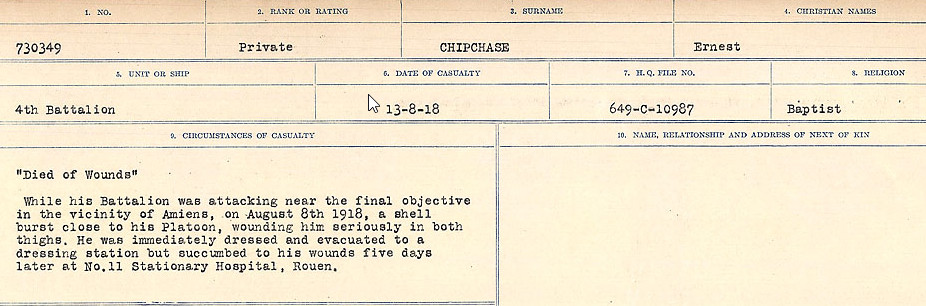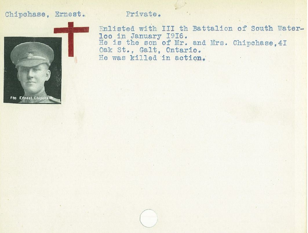 Son of Mr. and Mrs. Albert Chipchase, of 131, Forest Road, Galt, Ontario.