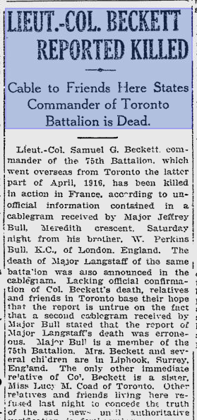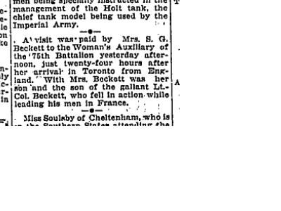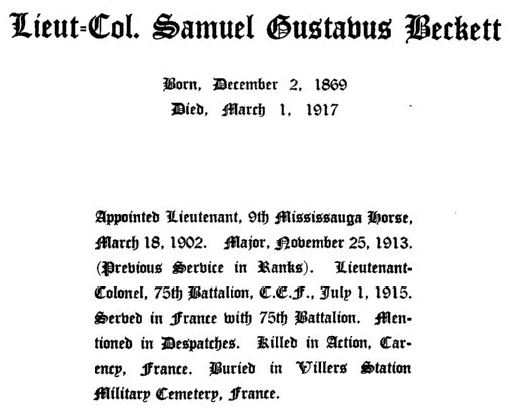 Son of Edward and Mary Ann Butland Beckett, of Toronto; husband of Florence Ethel Fletcher Beckett, of 404, Brunswick Avenue, Toronto, Canada.