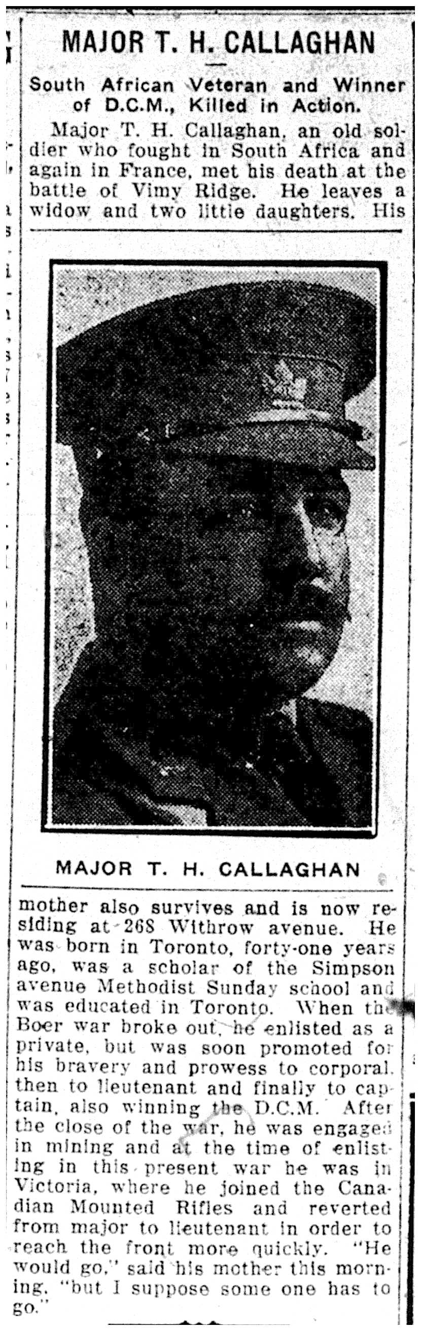 Son of Hugh and Ethel Callaghan. Husband of Mary Wilson Callaghan of Toronto, Ontario. Served in the South African Campaign.