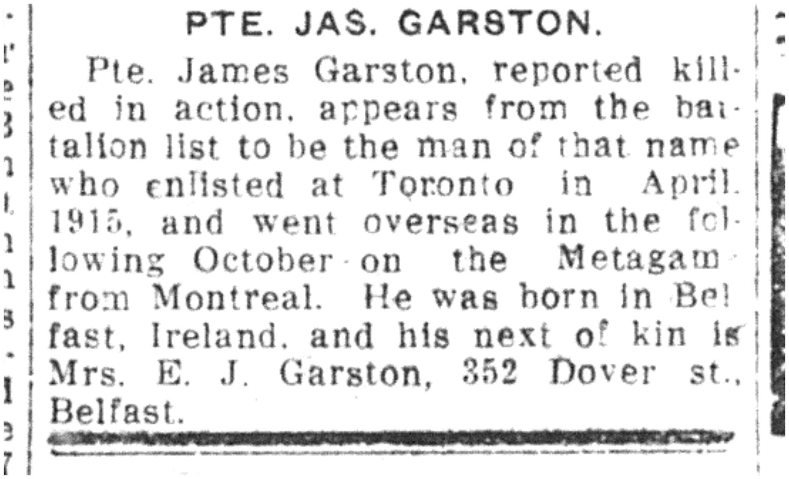 Son of Thomas and Eliza Jane Garston, of Belfast, Ireland.