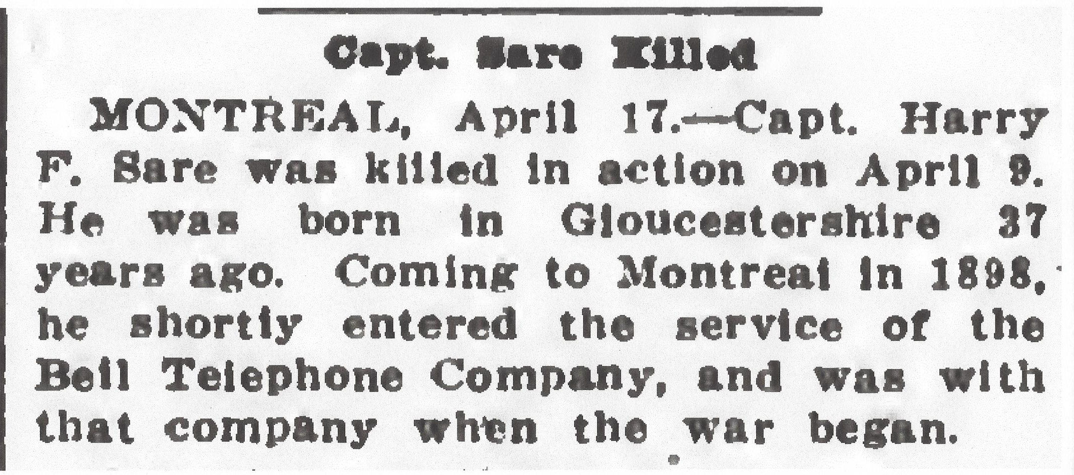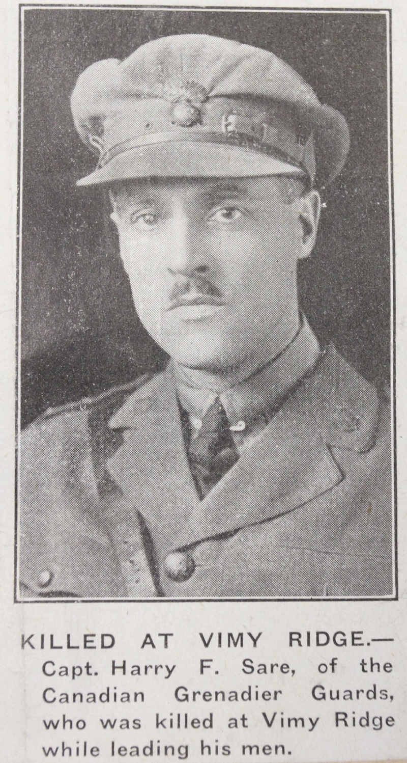 Husband of Helen Chalmers Sare, of Montreal, Quebec. Father of Lt. Colonel Paul Francis Lionel Sare, Royal Canadian Dragoons, who died on October 31, 1952, Korean war veteran.
