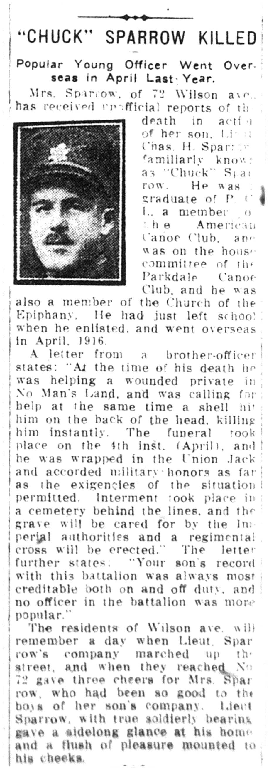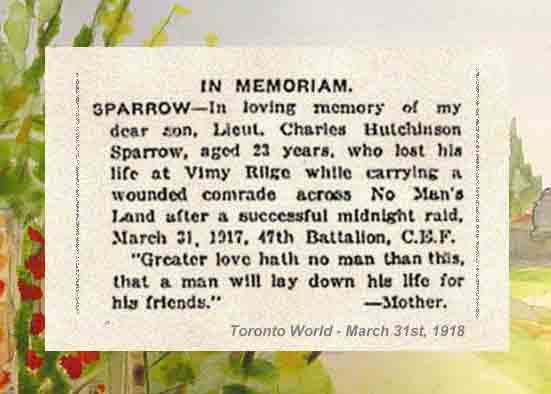 Son of Joseph William and Sophia Jane Sparrow, of 99, Jameson Avenue, Toronto, Ontario.