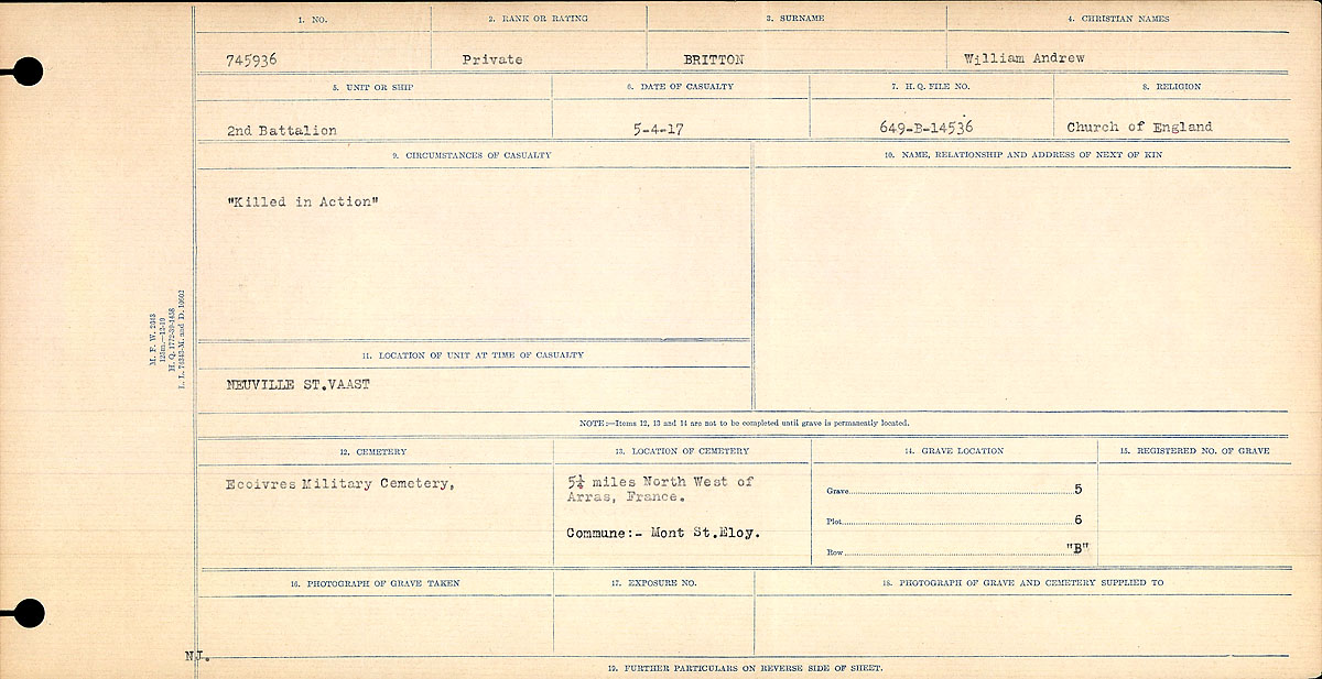 ECOIVRES MILITARY CEMETERY Pas de Calais, France