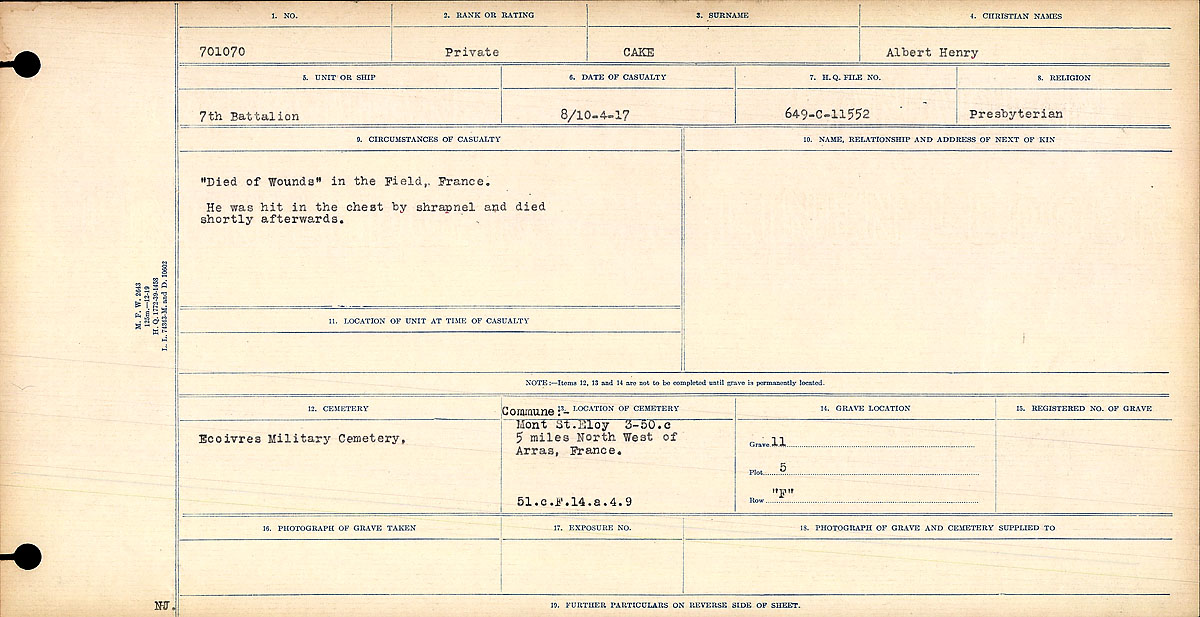 Private Albert Henry Cake