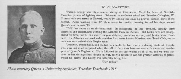 Son of Donald Gunn McIntyre and Mary E. McIntyre, of Clear Water, Manitoba. Brother of Corporal John Malcolm McIntyre, who died while serving with the Canadian Infantry (Saskatchewan Regiment).