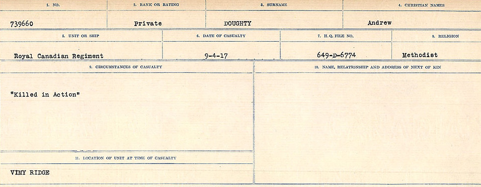 Son of William and Agnes Arnot Doughty, of Nanticoke, Ontario.