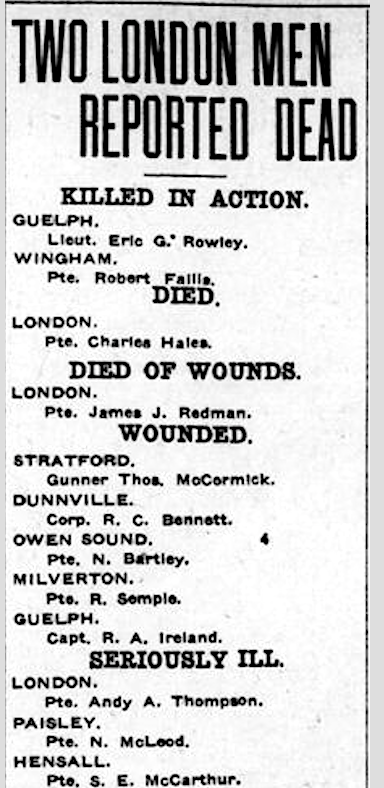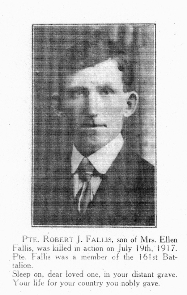 Son of James and Helen Fallis, of Wingham, Tumbury, Ontario.
