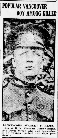 Uncle of Bombardier Norman Stanley Bajus who died on September 14, 1939 while serving with the Royal Canadian Artillery.