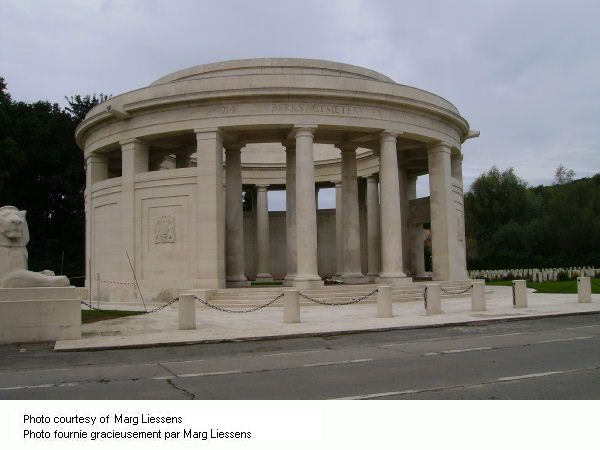 BERKS CEMETERY EXTENSION is located 12.5 kilometres south of Ieper town centre on the N365 leading from Ieper to Mesen (Messines), Ploegsteert and on to Armentieres.
