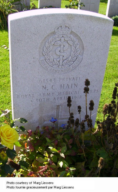 During the First World War, Brandhoek was within the area comparatively safe from shell fire which extended beyond Vlamertinghe Church. Field ambulances were posted there continuously and the Military Cemetery was opened early in May 1915 in a field adjoining the dressing station. It closed in July 1917 when the New Military Cemetery was opened nearby, to be followed by the New Military Cemetery No 3 in August 1917. Brandhoek New Military Cemetery No 3 contains 975 First World War burials. The cemetery was designed by Sir Reginald Blomfield.