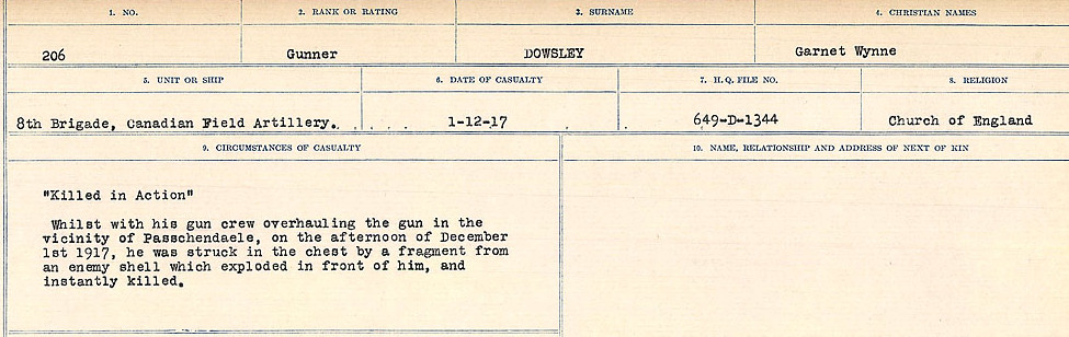Digital gallery of Gunner Garnet Wynne Dowsley