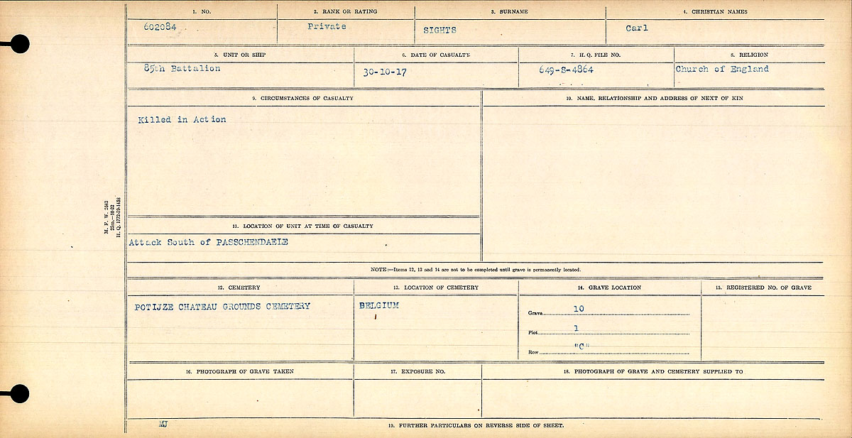 Digital gallery of Private Carl Sights