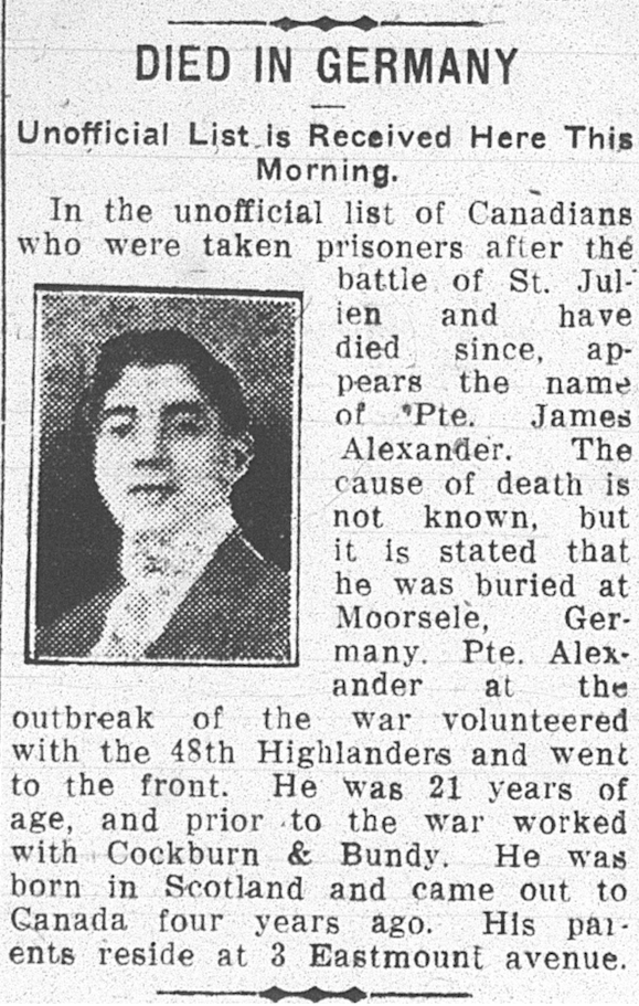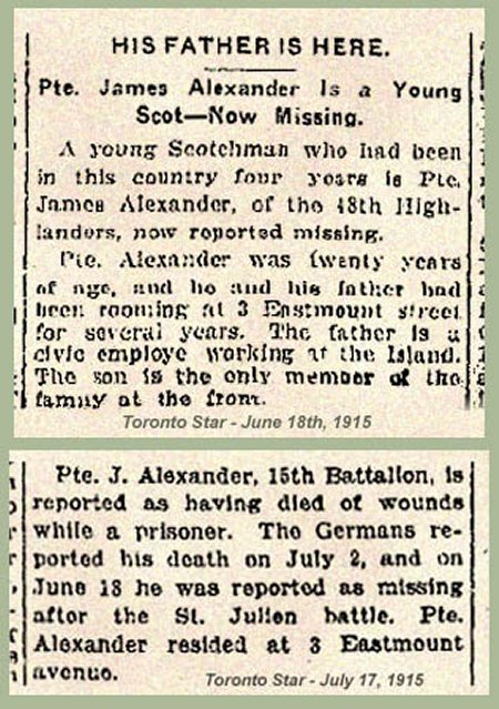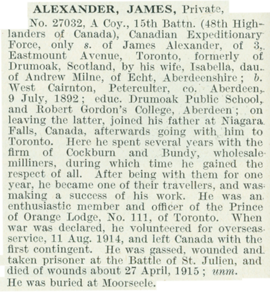 Son of James and Isabella Alexander, of Toronto, Ontario.