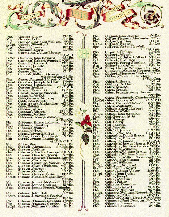 Page 91 of the First World War Book of Remembrance.