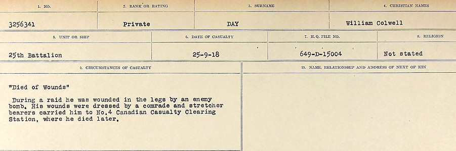Digital gallery of Private William Colwell Day