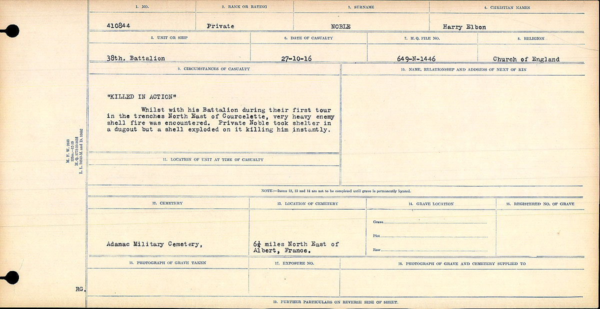 Miraumont is a village about 14.5 kilometres north-north-east of Albert and the Cemetery is some 3 kilometres south of the village on the east side of the road to Courcelette (D107). The ADANAC MILITARY CEMETERY is signposted in the centre of Miraumont.