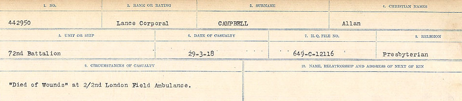 Son of William and Mary Campbell, of 5, Arnol, Stornaway, Isle of Lewis.