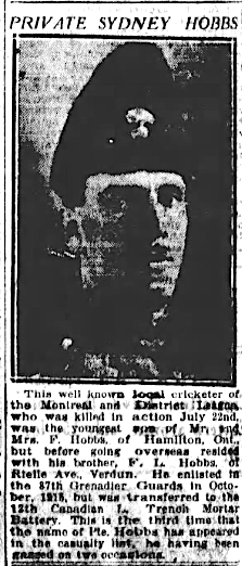 Son of Frederick Thomas and Louisa Hobbs, of Hamilton, Ontario.