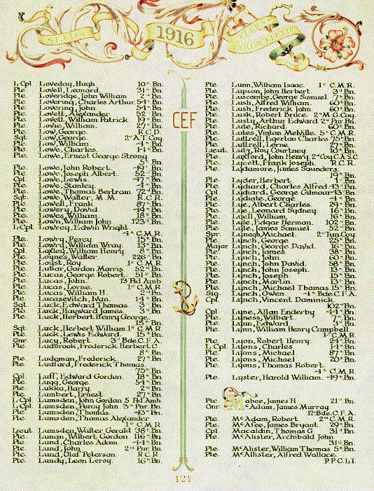 Page 121 of the First World War Book of Remembrance.