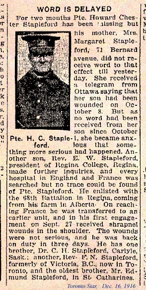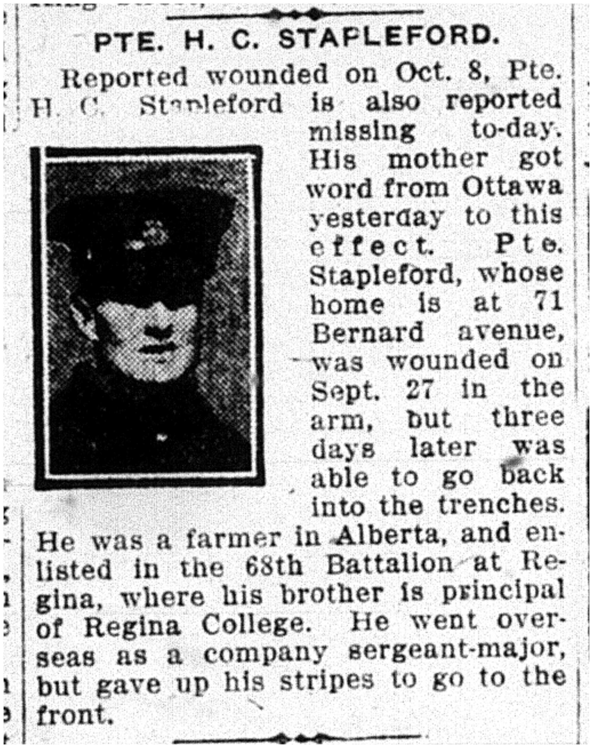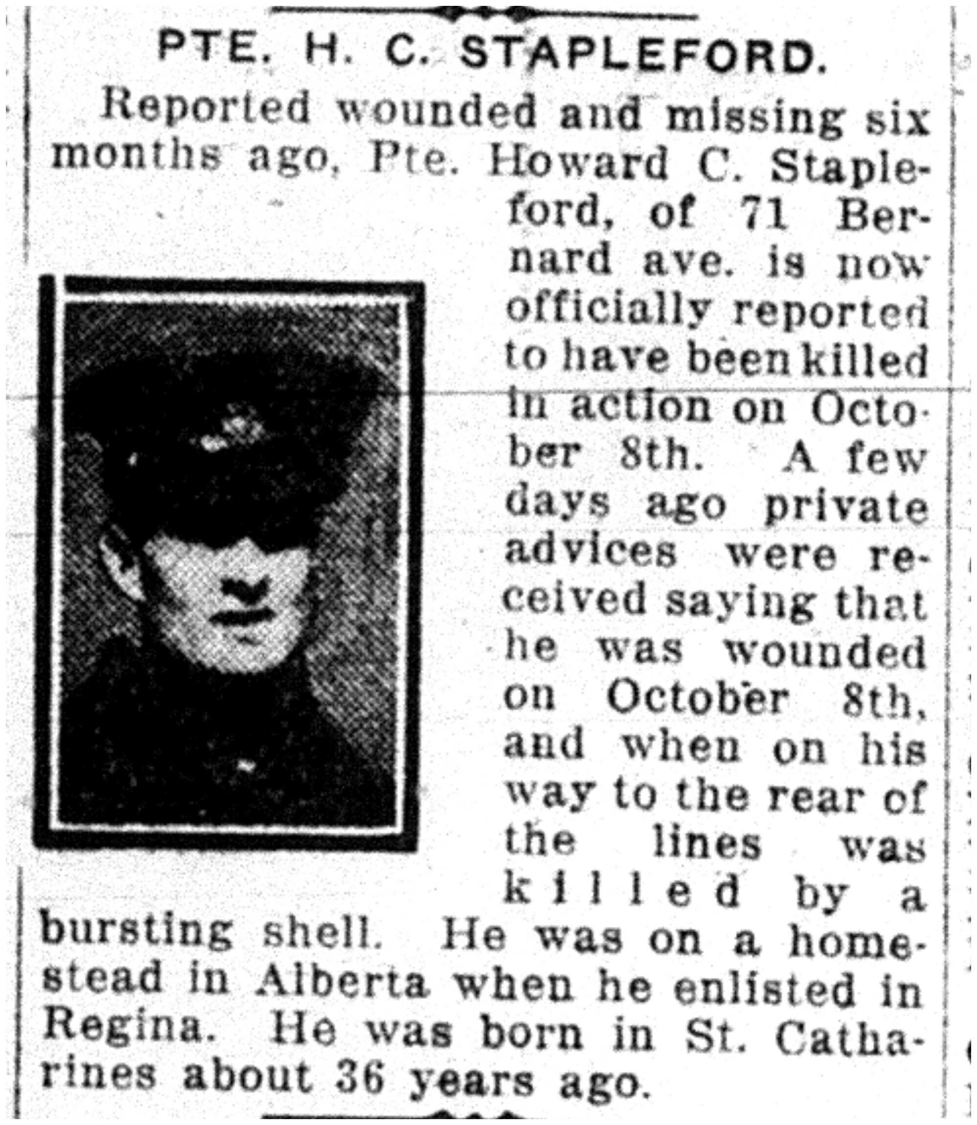 Son of Edmund and Margaret Stapleford, of 71, Bernard Avenue, Toronto, Ontario. Native of St. Catharines, Ontario.